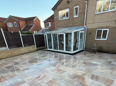 Decking ,Slabs,Indian sandstone , Porcelain ,Artificial Grass,Bricks,Grass.A well design patio, using the right materials can be a brilliant, functional addition to your garden – and home.